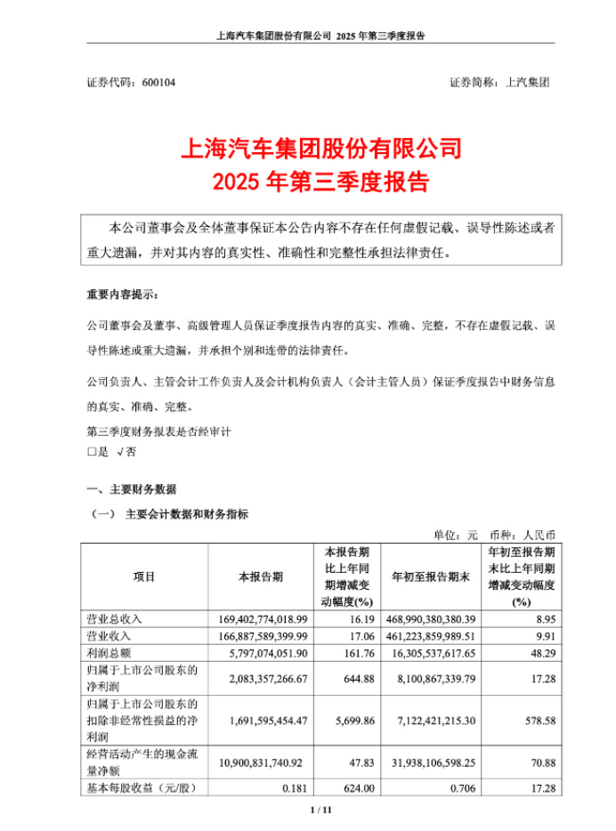 在自主品牌和新能源车领域,上汽集团表现亮眼。1-9月,上汽自主品牌累计销量达204.4万辆,同比增长29.2%,占公司销量比重达64%。上汽新能源车累计销售108.3万辆,同比增长44.8%,9月份单月销售19万辆,创下历史新高。海外市场方面,上汽集团累计销售76.5万辆,同比增长3.5%,其中新能源汽车在海外的销量达到21.5万辆,同比增长69.7%。上汽集团在电动化和智能化领域的投入超过1500亿元,形成了近26000项有效专利,涵盖纯电、混动、氢能三大整车平台及电池、电驱、超混系统和智能车全栈解决方案。