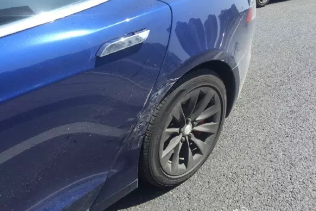 事发时,特斯拉并没有检测到左前方停靠在路边的桑塔纳,而从其侧后方擦过。桑塔纳尾灯以及右后视镜受损,而特斯拉的前保险杠、左前翼子板、左后视镜、左后车门以及左后翼子板受到不同程度的损伤。
