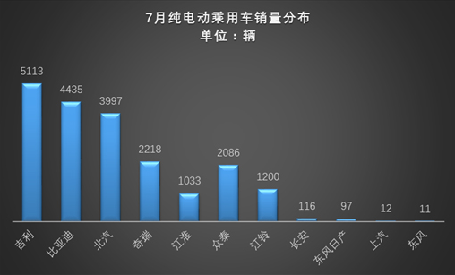 纯电动乘用车:7月销量环比下降18% 多家车企呈现不同幅度下滑