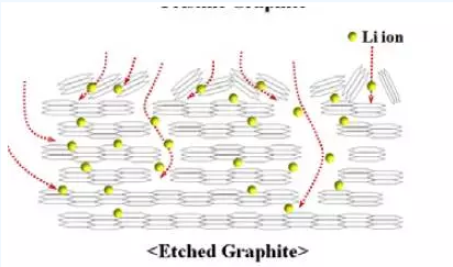 近日,三星SDI的Jae-Hyun Shim等研发了一种石墨表面改性方法,该方法利用了KOH腐蚀作用对石墨材料的表面进行改性,不需要高温煅烧,不仅能够提高石墨材料快速充电,还避免了材料的高不可逆容量损失。三星SDI所采用的人造石墨材料由杉杉科技提供,该石墨材料首先与20wt%的KOH溶液混合,并在80℃下搅拌24h,然后经过过滤和清洗后,在80℃下真空干燥12h,就可获得改性人造石墨。