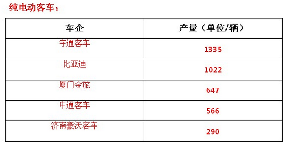 纯电动客车:宇通客车产量1335辆跃居第一,比亚迪紧跟其后排名第二,而厦门金旅位居第三,中通客车和济南豪沃客车位居第四和第五。8月纯电动客车相比于7月有所上升,但是对比4-6月份,还是有点差距。