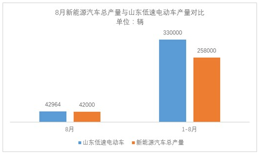 整体新能源汽车方面,据中汽协数据统计,2016年8月新能源汽车产量4.2万辆,1-8月累计达25.8万辆;而山东低速电动车,1-8月累计产量就达33万辆,已经超过中汽协统计的新能源汽车总产量。可见山东低速电动车市场潜力巨大。