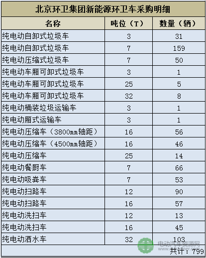 根据北京环卫集团的规划,年底前北京市环卫车辆新能源化将达45%,到明年底,负责东西城、二环、三环、四环等城市主干道环卫工作的1760余辆环卫车辆,都将换装成纯电动车型。而此次采购的799辆纯电动环卫车,就要求年底之前完成交货。
