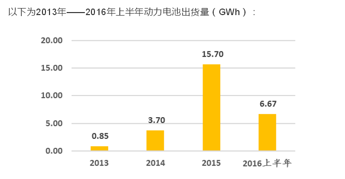 2016年上半年国内动力电池出货量同比增长1.5倍