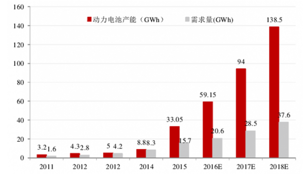 中国动力电池产能与需求对比