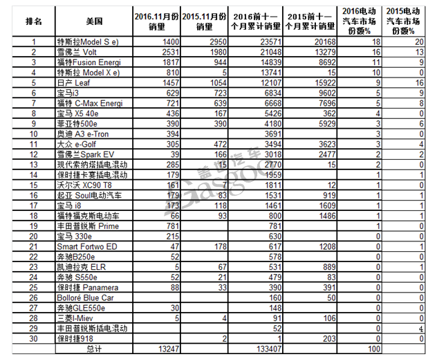 美国电动汽车市场的销量一直保持着较高水平,目前的累计销量已经打破了2015年创下的12万的销量纪录。12月份的销量预计可以超过2万辆,那么2016年的总销量预计将达到1万辆。