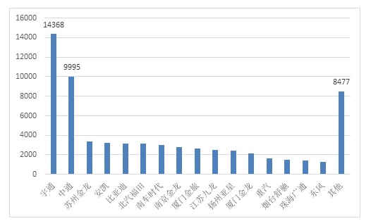 分车企看,新能源客车领域,2016年1-10月有产量的车企数量高达68家,而产量不足百辆的车企就近半成,达32家;累计产量在100-1000辆区间的车企达20家;产量过千辆的车企仅16家,累计产量达58560辆,占比高达87%。而产量过万辆的仅郑州宇通一家。