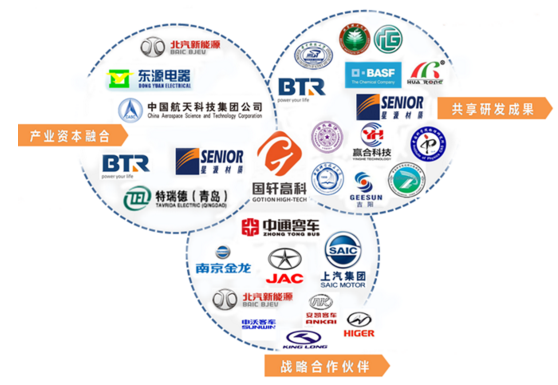 在中游,国轩高科同国内、国际知名科研院所、高校等合作,产研结合构筑研发链条。
