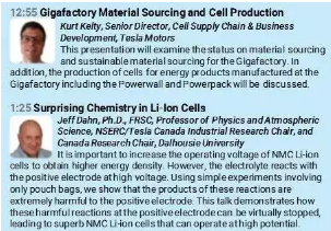 此前他一直从事三元层状材料(NMC)锂离子电芯(特斯拉优选的电芯化学工艺)的研究。他的演讲主题为“锂离子电池中令人惊艳的化学反应”——将讨论如何停止有害的化学反应从而提升其可用性。