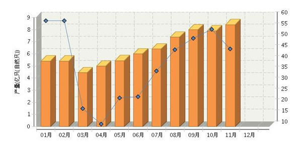 根据国家统计局公布数据,2016年1~11月,全国锂离子电池行业累计完成产量同比增长36.78%。其中:11月份完成产量同比增长45.63%。2016年全国锂离子电池行业月度产量及同比如下图所示。