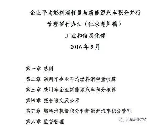 工信部《企业平均燃料消耗量与新能源汽车积分并行管理暂行办法》(征求意见稿) (简称《CAFC+ZEV办法》)自2016年9月22日公布后征求意见已结束。2016年12月5日,《CAFC+ZEV办法》提交世界贸易组织技术性贸易壁垒协定委员会(简称:WTO/TBT)进行了分发通报,到2017年2月6日已按照约定的时间完成了通报。