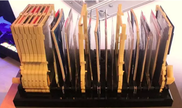 冷却系统流通到每个模组、每个结构区域;在每两个电芯间都会有冷却散热片,冷却散热片再与冷却板相连。目前,尚没有看到BOTLEV的冷却系统拆解,下图是VOLT2代的冷却纱结构,供参考。