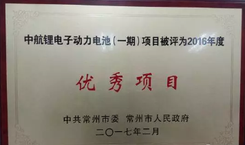 2016年度常州市优秀项目奖日前揭晓。中航锂离子动力电池(一期)项目榜上有名。这是继中航锂电(江苏)有限公司荣获常州市金坛区“工业投入领先奖”后,又收获常州市“优秀项目”奖,成为金坛区唯一获此殊荣的企业。