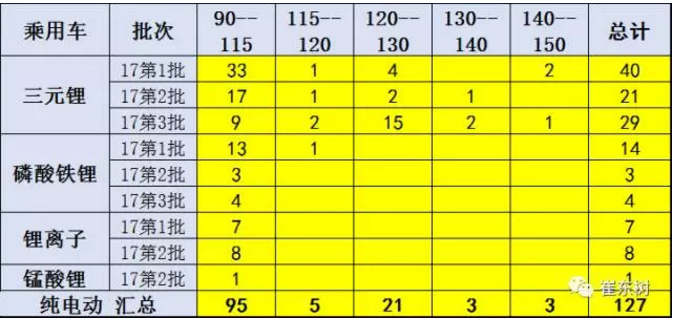 从纯电动乘用车的电池提升看,第三批的已经是三元锂电池120-130瓦的成为主力车型,实现了电池的小型化高密度趋势。磷酸铁锂的电池难以拿到1.1倍的补贴,实际的市场竞争力将大幅下降。