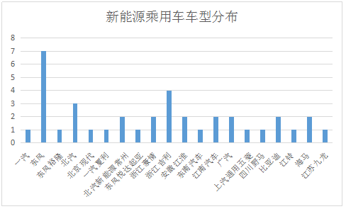 在第三批新能源汽车推荐目录中,共有38款乘用车进入目录,其中纯电动乘用车33款、插电式混合动力乘用车5款。覆盖一汽、东风、东风裕隆、北汽、北京现代、一汽夏利、北汽新能源(常州)、东风悦达起亚、浙江豪情、吉利、江淮、东南汽车、江南汽车、广汽、上汽通用五菱、四川野马、比亚迪、江铃、海马、江苏九龙20家企业。其中,五款插电式混合动车乘用车分别分布在吉利、广汽、比亚迪。