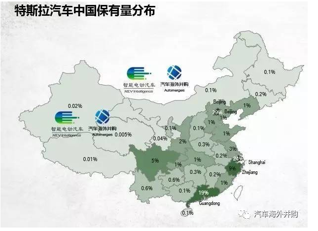 从地域分布上看,特斯拉29%的销量流向了北京,24%销量流向了上海,19%的销量流向了广东。京沪粤三地共贡献了特斯拉在中国销量的72%。