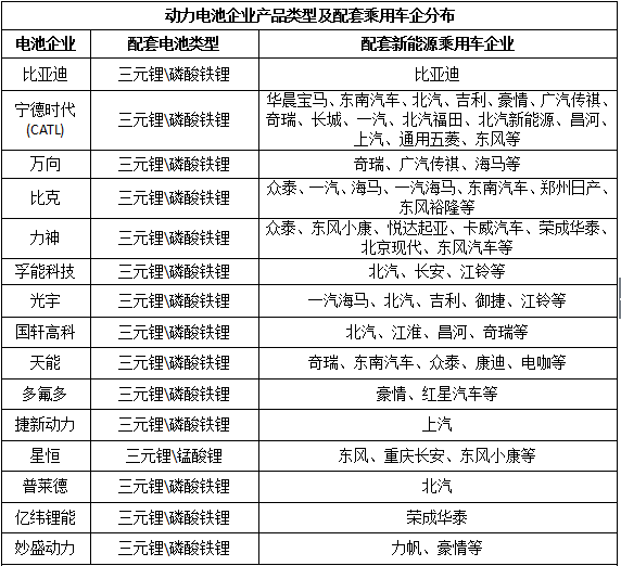 宁德时代合作车企多达15家以上,包括北汽、华晨宝马、吉利、上汽、奇瑞、东风、长城等主流车企。力神合作车企达7余家,包括众泰、一汽、北京现代、东风等主流车企。比克合作车企达7家以上,包括众泰、一汽、海马、郑州日产等。万向给奇瑞、广汽传祺、海马等车企提供动力电池。