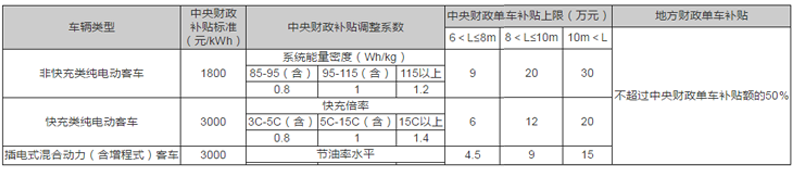 关于新能源客车的补贴标准更改为补贴金额=车辆带电量x 单位电量补贴标准x 调整系数(调整系数:系统能量密度/充电倍率/节油水平),具体如下: