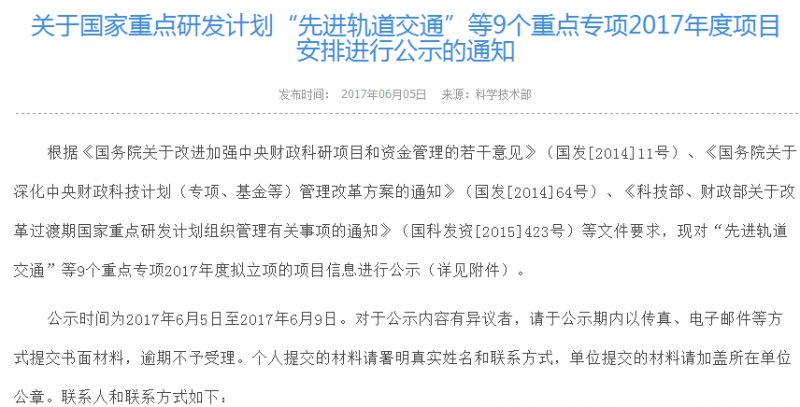 近日,小编从科技部官网获悉,根据《国务院关于改进加强中央财政科研项目和资金管理的若干意见》(国发[2014]11号)、《国务院关于深化中央财政科技计划(专项、基金等)管理改革方案的通知》(国发[2014]64号)、《科技部、财政部关于改革过渡期国家重点研发计划组织管理有关事项的通知》(国科发资[2015]423号)等文件要求,现对“新能源汽车”等9个重点专项2017年度拟立项的项目信息进行公示。公示时间为2017年6月5日至2017年6月9日。