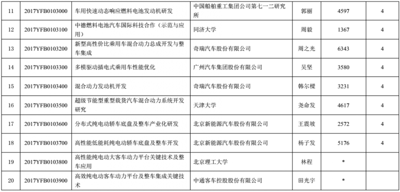 国家重点研发计划2017年度项目之“新能源汽车”专项公示