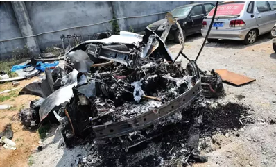这起事故比国外的多起特斯拉起火事故都要严重,整台车已经严重烧毁,无法辨识,并且电芯散落一地,说明受撞击力度和火势都非常凶猛。