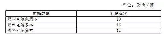 燃料电池汽车补贴标准