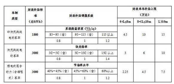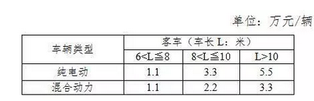 新能源客车补贴标准