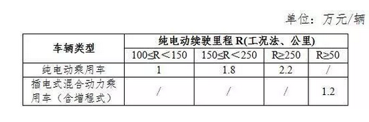 新能源乘用车补贴标准