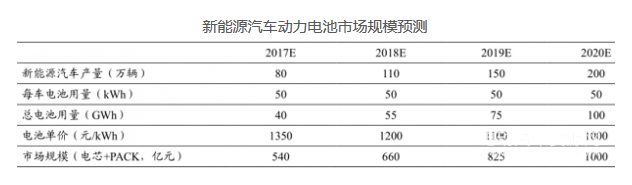 2016年中国动力电池出货量达到30.5Gwh,工信部、发改委、科技部、财政部联合印发的《促进汽车动力电池产业发展行动方案》中更是提出了2020年动力电池总产能超过100Gwh的目标,预计未来五年动力电池仍能保持超过 30%的复合年均增长率。
