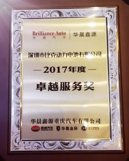比克电池受邀参加“立信创鑫 聚源共赢”华晨鑫源2017年度供应商大会,此次大会上比克电池再获一奖——“2017年度卓越服务奖”