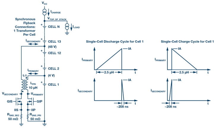 图4. LTC3300-2高效率、双向、多电池单元主动均衡器。