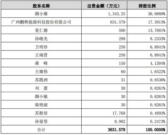 1月31日,鹏辉能源对外宣称,为稳定原料供应,拟与湖南鸿跃电池材料有限公司及其股东签署协议,鹏辉能源以4000万元增资湖南鸿跃,增资完成后持有湖南鸿跃17.3913%的股权(下表)。
