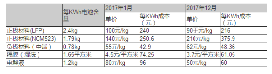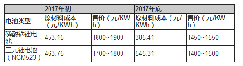 有数据数据显示,2017年底动力电池价格较2017年初下滑20%~25%:磷酸铁锂动力电池组价格从年初的1.8~1.9元/Wh下降到年底的1.45~1.55元/Wh;三元动力电池组价格从年初的1.7~1.8元/Wh下降到年底的1.4~1.5元/Wh。