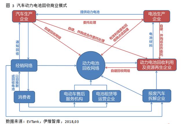在《中国汽车动力电池回收拆解及梯次利用行业白皮书(2018)》中,EVTank将汽车动力电池的回收主体分为汽车生产企业、电池生产企业和第三方回收利用资源再生企业。随着动力电池回收拆解及梯次利用的规模日益扩大,将会有更多的企业加入到该行业中,EVTank分析认为三种动力电池回收主体将长期并存。