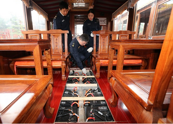 给画舫改装“绿色动力”,戴雪松表示,三年前,他就有了这个想法,但当时成本高,难度大,后来他求助于南京市地方海事局。南京市地方海事局在接到南京秦淮风光旅游股份有限公司请求引进锂电池动力在夫子庙画舫旅游船上运用的技术支持后,以黄金山为代表的南京市地方海事局“金质船检”团队随即开展了《锂电池在旅游客船上应用推广技术研究》课题研究,相继攻克了船舶改造、船用电池组装、码头充电、电池电量和安全实时监控等一道道技术难关,提升了项目的“含金量”。据了解,自2018年1月项目启动以来,课题调研、开题评审、试点船舶图纸审查及实船改造工作已经完成。