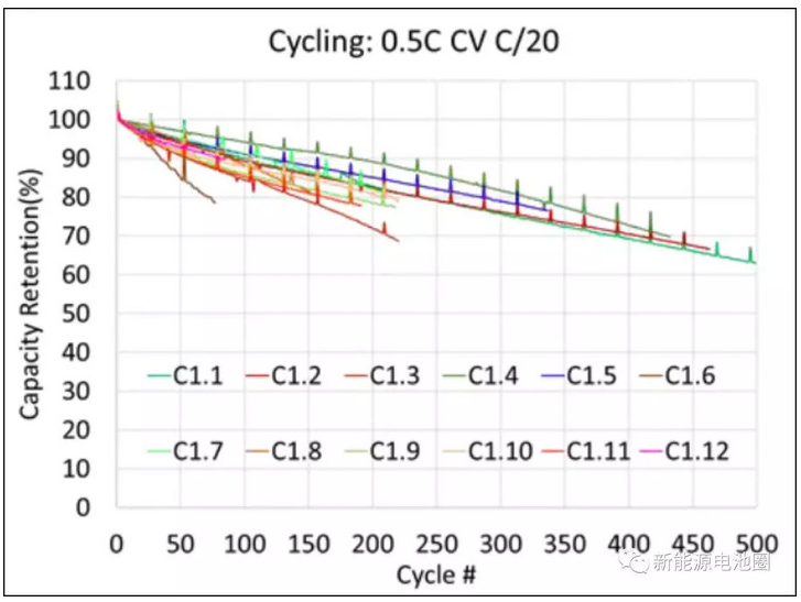 不同电解液配方的循环寿命