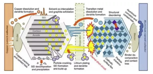 影响锂电池容量的影响因素很多,使用温度、充放电电流、充放电截止电压等因素都会影响锂离子电池的衰降速度。造成锂电池容量衰降的机理可以分为三类:内阻和极化增加、正负极活性物质损失和Li损失。