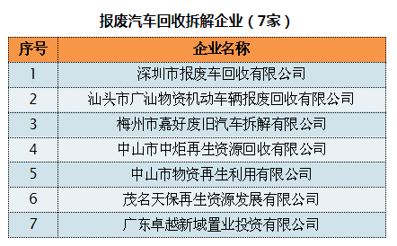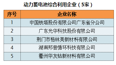 广东省新能源汽车动力蓄电池回收利用试点企业名单(第一批)