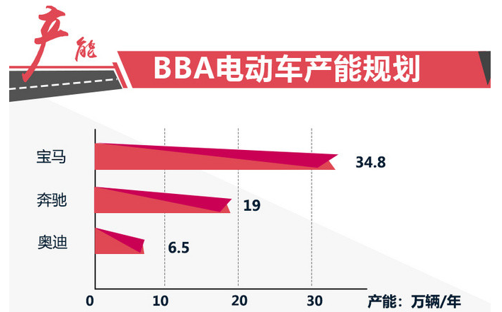 目前北京奔驰在大兴、顺义工厂共规划了19万辆电动车产能,共投产EQE、EQC、EQB、EQA四款电动车型。奥迪方面则表示到2022年时将在中国投产5款新能源产品,而现有电动车产能规划显示,奥迪仅有6.5万辆电动车产能。