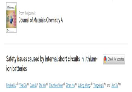 第一项成果:Safety issues caused by internal short circuits in lithium-ion batteries(锂离子电池内部短路引起的安全问题)。该成果是,华为中央研究院联合北航的研究人员提出了一种具有高度重复性的研究电池内短路的新方法,并结合实验和仿真手段考察了内短路发展过程。