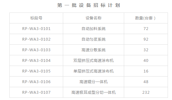 瑞浦能源新建高性能动力与储能锂离子电池及系统智能制造项目涉及的主要设备和仪器:自动加料系统、高速浆料分散设备、浆料输送系统、高速挤压涂布机、X射线面密度同步测量仪、β射线面密度同步测量仪、激光在线测厚仪、高速辊压分切一体机、高速涂布模头、自动极耳成型分切一体机、EV高速全自动卷绕机、贴胶刻码机、X-RAY自动检测系统、热压机、配对机、超声波焊接机、激光焊接机、自动入壳机、电芯装配物流系统、电芯baking线、化成分容自动线、化成分容物流线、全自动注液机、自动氦检机、OCV测试机、自动包膜机、AGV极卷输送系统、立体式极卷仓储物流系统、立体式原材料仓储物流系统、立体式成品仓储物流系统、全自动模组装配线、PACK自动装配线、大功率充放电检测柜、高压包自动装配线、大功率激光焊接机、六轴机器人、AGV自动物流输送系统等。粘度计、膜片电阻测试仪、电子天平、固含量测试仪、流变仪、金属粒子检测仪、拉压力试验机、千分尺、金相截面分析仪、金相切割机、金相磨抛机、影像测量仪、绝缘电阻测试仪、耐压测试仪、水分仪、温湿度露点仪、尘埃粒子计算器、数显式扭矩测试仪等。热能回收系统、蒸汽(导热油)锅炉、真空泵、制氮系统、离心式冷水机组、冷冻式干燥机、冷水塔、压缩空气系统、转轮除湿机组、NMP回收系统、废水处理系统、温度露点监控系统、电动物流车、物料转运小车等。