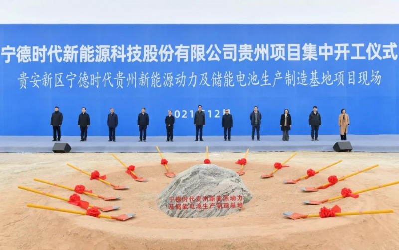 12月24日,宁德时代贵州项目集中开工仪式在贵安新区宁德时代贵州新能源动力及储能电池生产制造基地项目现场举行。贵州省委副书记、省长李炳军出席并宣布开工。省委常委、贵阳市委书记、贵安新区党工委书记胡忠雄,宁德时代副董事长李平发言。副省长郭锡文出席。开工仪式由省委常委、常务副省长李再勇主持。