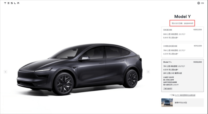 特斯拉中国官网信息显示,目前下单Model Y L的预定交付时间已更新至11月份,表明10月份的Model Y L已全部售罄。目前,普通版Model Y的交付周期仍保持在1-3周,上海工厂可能会将部分Model 3的产能调整至Model Y L以满足市场需求。