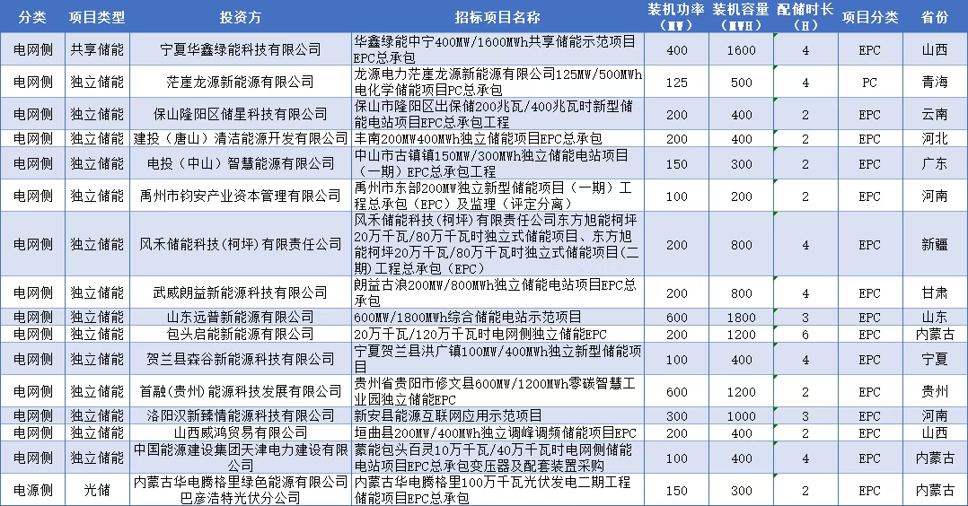 项目规模最大的是600MW/1800MWh综合储能电站示范项目。招标业主为山东远普新能源有限公司,项目位于项目位于山东潍坊,建设规模一期建设200MW/402MWh综合储能电站(199MW/398MWh磷酸铁锂+1MW/4MWh全钒液流);二期建设200MW/440MWh综合储能电站(180MW/360MWh磷酸铁锂+3MW/12MWh全钒液流+17MW/68MWh磷酸铁锂)。