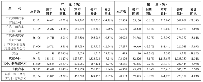 在新能源汽车领域,广汽集团9月份的销量为42,565辆,同比下降9.24%,本年累计销量为268,343辆,同比下降4.99%。具体到品牌,广汽埃安9月销量同比下降最多,销量为27,297辆,同比下降32.37%。