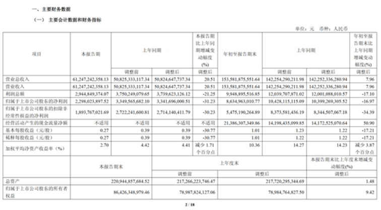 长城汽车发布了2025年第三季度财报。财报显示,长城汽车前三季度实现营收1535.82亿元,同比增长7.96%;归母净利润86.35亿元,同比下滑16.97%。第三季度营收612.47亿元,同比增长20.51%;归母净利润22.98亿元,同比下滑31.23%。利润下滑主要由于公司加速构建直连用户的新渠道模式,加大新车型、新技术的上市宣传及品牌提升,投入增加导致收益波动。