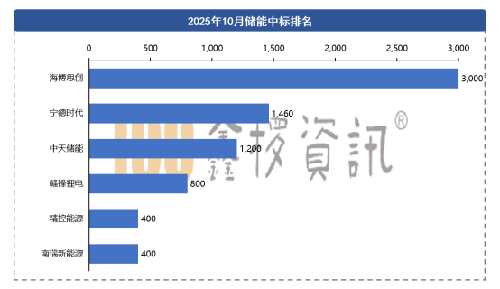 10月储能系统中标排名前列的厂商有:海博思创、宁德时代、中天储能、赣锋锂电、精控能源、南瑞新能源等多家企业,其中海博思创凭借着中国电建湖北工程有限公司包头威俊50万千瓦/300万千瓦时电网侧独立储能示范项目储能设备采购项目中标名列本月第一。