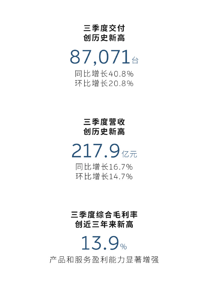 蔚来在三季度的现金储备达到367亿元,环比大幅增长近百亿,实现了正向经营性现金流和自由现金流。对于四季度,蔚来给出了交付指引,预计交付量在120,000台至125,000台之间,同比增长65.1%至72.0%,营收指引为327.6亿元至340.4亿元,同比增长66.3%至72.8%,均创下历史新高。