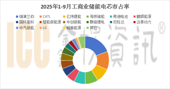 分企业看:2025年1-9月,宁德时代依靠过硬的产品性能及多年积攒的口碑,市占率大幅领先,尤其是在海外市场,出货超100Gwh,位列第一梯队;海辰储能、亿纬锂能、弗迪电池、瑞浦兰钧、中创新航出货超30GWh,位列第二梯队;其它企业则在30GWh以下。