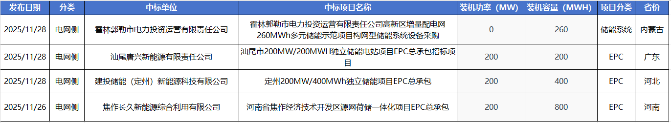 12月1日,德州市泓呈启新能源(武城)有限公司200MW/400MWh智慧储能项目EPC总承包招标公告发布。项目招标人为泓呈启新能源(武城)有限公司,项目位于山东省德州市武城县武城镇付王庄南,项目总容量200MW/400MWh,其中磷酸铁锂储能系统195MW/390MWh,全钒液流储能5MW/10MWh。本次招标为EPC总承包。